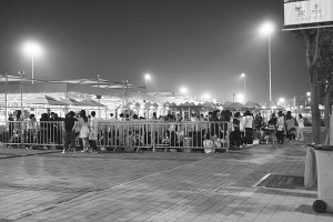 500多人在圍欄邊席地而坐,或聊天或瞌睡,為的是上午9時開園后第一時間進入……這是今晨1時,記者在世博園區浦東上南路入口處看到的情形。同樣的一幕,也出現在了距離文化中心較近的長清路、洪山路、高科西路等入口,總人數不下2000人。如此場面,令值夜班的安保人員傻了眼,“開園第一天也沒這么早來的,有的昨天還沒閉園就來了!”
