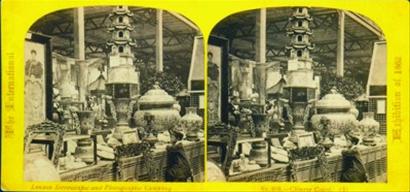 其中1862年倫敦世博會中國館立體照片,是迄今為止發現的世博會上有關中國館的最早的原版照片,彌足珍貴。照片由兩張一模一樣的正方形泛黃蛋白照組成。每張大小約在10厘米。底下一行英文小字顯示,照片由當年的倫敦立體攝影公司制作完成。