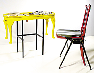 這張黃色桌子和紅色椅子是由舊桌椅改造而成的。美國設計師在舊椅子和桌子底部加上長長的黑色金屬腿,并為桌子和椅子配上亮麗的顏色。這樣一來,矮矮的桌子和椅子長高了,原本的四條腿變得不著地,不過卻因為這樣,看起來很特別。媒體在介紹這個設計時評價,這種舊物翻新的方式將傳統與現代相互結合,不僅創意獨特,而且節約了物資。