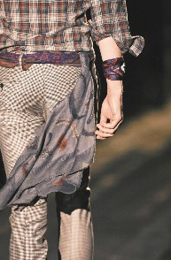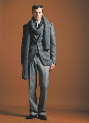 要表現貴公子獨特風味,垂墜在前襟最為妥當,或是嘗試把絲巾系在頸邊、手腕邊,也可以試試外繞在金屬腰帶上,或干脆讓絲巾隨著步伐在腰際擺動飄逸。絲巾質感輕柔,和秋冬大量出現的華麗搖滾有剛與柔、動與靜對應的美感,更加突顯秋冬流行潮流。