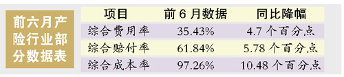 保監會指出,國內產險業今年上半年實現了行業經營上的“兩降兩升”,即:費用率、賠付率下降,經營效益、保費充足率上升。