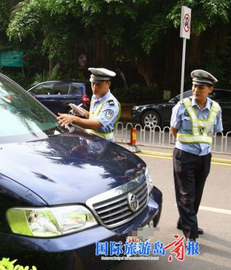 據在現場的市民李先生介紹,昨日上午,他和朋友開車到古玩一條街閑逛,可因前方堵車,一直無法進入,李先生隨即下車走到路口發現,原來有兩輛軍車和一輛省政府公務車違規在路邊停車,導致交通堵塞。就在車主們焦急等待的時候,海口交警及時趕來,疏導了現場的交通后,毫不猶豫地對這些違規停車的“特權車”及其他私家車開出罰單。(國際旅游島商報 記者王煥娟特約記者李順成攝影報道)