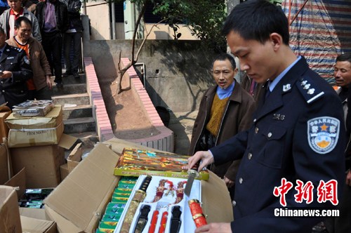 據通報,11月3日,重慶云陽縣警方接到群眾舉報稱,云陽新城銀海綜合批發市場內發現仿真槍銷售點。警方迅速前往批發市場突擊搜查,在一門市店面內發現7支仿真槍,同時,在門市地下倉庫發現大量的仿AK47、仿64式、仿77式仿真槍,以及大量摔炮、塑料子彈等。