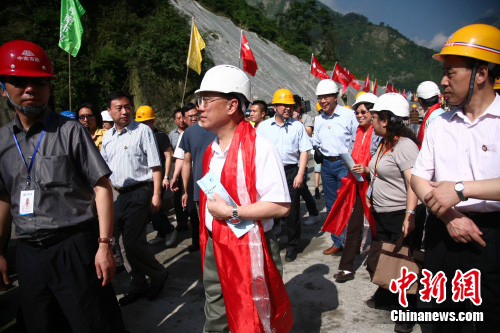中新網汶川7月27日電(劉賢 張浪)27日上午,香港特區行政長官曾蔭權率領的特區政府代表團抵達四川震中映秀,考察了香港援建省道303線映秀至臥龍段公路。