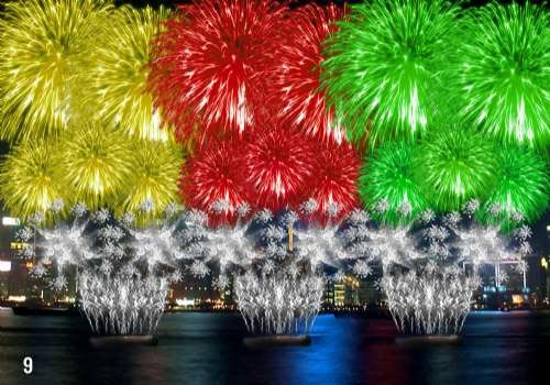 國(guó)慶煙花匯演共有九幕。第一幕“萬(wàn)眾同心”,天空中將綻放出大“紅太陽(yáng)”、“紅色五角星”和“紫荊花”形圖案,慶祝國(guó)慶。在第五幕,銀閃、綠閃、紅閃、金閃、橙閃等顏色的煙花,和諧悅目,展示該幕主題“大同世界”;最后一幕“國(guó)運(yùn)昌隆”,絢爛而熱鬧,加上長(zhǎng)達(dá)六十秒密集發(fā)放繽紛色彩的煙花,把整個(gè)煙花匯演推向高潮。