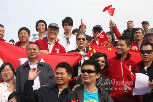 昨日(22日),香港奧委會(huì)主席霍震霆也親臨賽場(chǎng),和眾多觀眾一起為比賽加油喝彩。霍主席還專門到香港馬迷集中的看臺(tái)和大家一起,高舉國(guó)旗和香港特區(qū)區(qū)旗齊聲吶喊,為每一位賽手鼓勁加油。(陳曉鐘)