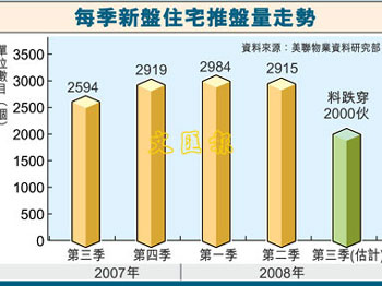 中新網7月7日電 據香港文匯報報道,美聯集團表示,香港過去數季發展商推盤的單位數目相當穩定,近3季均維持約2900個單位左右的水平,預期第三季未會再有此類項目,加上近期樓市氣氛未及年初,因此相信第三季發展商推盤步伐會有所減慢,估計單位將跌穿2000個的水平,較第二季跌三成,并創5個季度的新低。