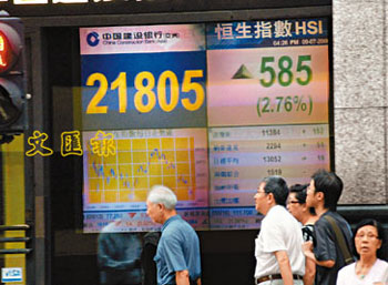 香港恒生指數9日上升585點。(圖片來源:文匯報)