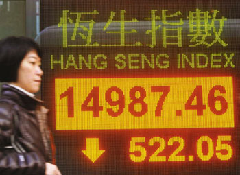 美股回升,令港股7日高開,但恒指瞬即掉頭向下,跌足全日,主要因為美銀減持建行的消息,使一眾中資銀行股被拋售,加上內(nèi)地3G正式發(fā)牌,投資者遂趁高位沽貨離場,令港股失守15000點關(guān)口,全日跌522點,收報14987.4點,跌幅3.4%,成交高達900億元,創(chuàng)逾3個月以來新高。即月期指7日報15064點,跌470點,仍高水77點。