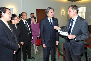 曾俊華及代表團部分成員隨后前往俄羅斯金融市場服務部,并與主管Vladimir Milovidov就整體世界經濟前景特別是俄羅斯金融市場表現交換意見,雙方又討論金融市場服務部在規管市場及執行措施方面的手法。