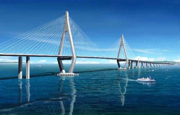 據大橋工程建設推薦方案顯示,大橋將包括6648米海底隧道、主跨460米鋼箱梁斜拉橋,主跨250米、220米、150米混凝土連續剛構橋,以及70米、50米等跨混凝土連續梁橋等,估算水泥用量將達183.55萬噸,較杭州灣跨海大橋的129.1萬噸多出42%;而其鋼梁、鋼材和鋼筋等用鋼量也將高達123.35萬噸,是杭州灣跨海大橋80萬噸的1.5倍,更相當于建造11個“鳥巢”國家體育場。據悉,以上水泥及用鋼量還不包括大橋香港口岸人工島和交通工程的所耗量。