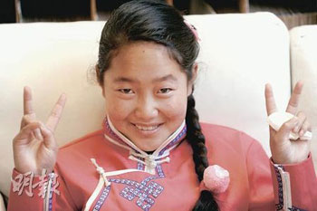 剛經歷人生中的生死一關,眼前的斗格身穿粉紅色民族服,束起鬢辮的她雖然一直沉默不語,不時露出羞澀的純真笑容,難以想象她的小腦曾出現如高爾夫球大的腫瘤,令她受折磨多年。