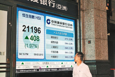 中新網(wǎng)3月9日電 據(jù)香港《文匯報》報道,美國就業(yè)數(shù)據(jù)理想,加上法國表示會支持希臘,紓緩歐洲債務(wù)危機,亞太區(qū)股市普遍造好,港股8日也跟隨上升,最多曾升469點至最高的21257點,收市報21196.8點,升408.9點,不單收復21000點大關(guān),更一舉升穿50天線,創(chuàng)6周收市新高,升幅達2%,但成交額只有650億元。