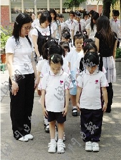 12日下午2時(shí)28分,圣心女子中學(xué)校長蘇映璇引領(lǐng)全體師生默哀一分鐘,悼念去年汶川大地震死去的同胞,該校各級學(xué)生代表也在操場進(jìn)行獻(xiàn)花儀式。