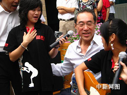 在地震傷員康復(fù)中心,唐英年受到了熱烈的歡迎。今年10歲的夏鳳婷地震時右肘部骨折,但愛好畫畫的她用安裝的機(jī)電手,為唐司長畫了一幅色彩斑斕的海上日出。幾位腿部受傷的少女聲情并茂地唱起了《小城故事》,在她們動人歌聲的感染下,唐英年興致勃勃地走到中間一起唱了起來。另一位雙腿都安裝著假肢的青年則在一旁表演起了自行車,向唐司長展示自己的康復(fù)成果。