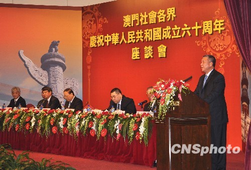 何厚鏵在致辭時表示,在國家六十華誕即將到來之際,澳門回歸祖國亦快將十周年。“一國兩制”方針和祖國的繁榮富強,是保持澳門長期繁榮穩定的根本保證。