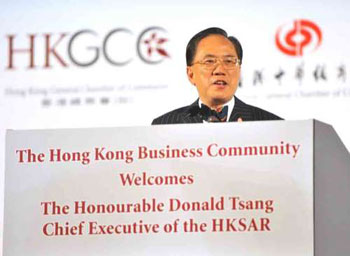 談及香港和內地的關系,曾蔭權表示,在過去的30年中,香港在國家經濟發展進程中扮演相當重要的角色,同時也從中受惠。在“一國兩制”之下,香港地位獨特,他呼吁商界支持施政報告提出的計劃,以改善香港的生活水平和經濟結構,把握機遇、創造就業機會等。“施政報告所提出的措施都是為了讓香港變成一個更適合居住和生活的城市,我期望在接下來的3至5年內,能看到成果。”
