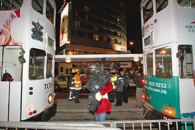 中新網12月28日電 據香港《文匯報》報道,27日晚氣溫驟降兼下冷雨,兩輛先后于跑馬地開出的電車,駛至皇后大道東對面時,疑因天雨路滑,后車收剎不及,撞撼前行正進站電車,釀成共12名乘客及1名車長受傷,須多輛救護車將各人送院治理。