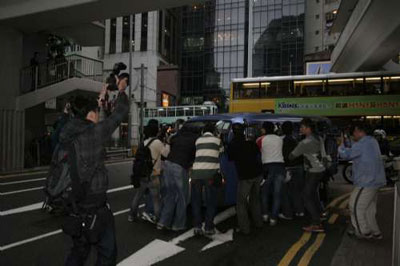 車輛在軍器廠街駛進警察總部的路程,原本只需短短一分鐘,因在場守候的記者剛見客貨車駛進,即蜂擁而上包圍客貨車拍照,結果車輛花了多達15分鐘,才能進入大廈內,場面一度混亂,期間警方出動十多名警員在馬路上維持秩序。陳的私人保鏢3日曾尾隨警方車輛駛離寓所,但4日總部現場所見,他們似已再無隨行。