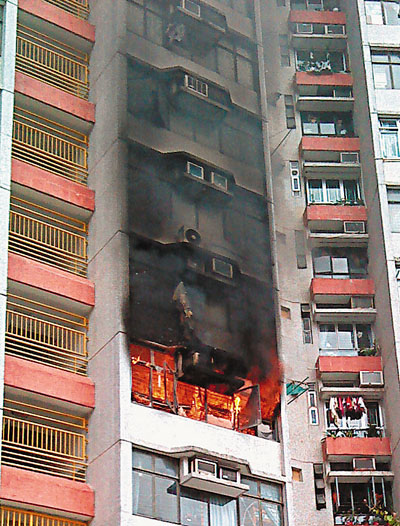 中新網2月22日電 據香港《文匯報》報道,香港牛頭角彩霞村一單位21日下午閉門失火,火舌濃煙自窗戶吐出殃及樓上2層單位,逾200住客急忙逃生,有行動不便長者更一度受困,需消防員背下樓逃生,消防員灌救半個小時后將火撲滅。