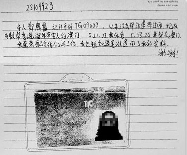 據報道,懷疑被人盜用導游證的鄭應麗4日接受電視臺訪問時表示,看過珠寶店當天的錄影片段,但未能認出誰是“黑工”導游;她稱,這次事件發生前,導游證已被盜用,冒牌導游更曾被人投訴,“北京那個被人投訴的團在(5月)9日、10日來港!编嵳f,相信導游證至少被盜用2次,“你帶了團,要拿回傭,永盛必須記錄,這些要問他們,才知道(她)帶了多少團?用了我的證件多少次?”她希望警方盡快查出真相。