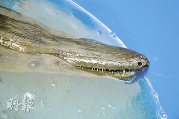 康文署6日再在轄下場地人工湖發(fā)現(xiàn)5條福鱷,即共發(fā)現(xiàn)22條。這5條新發(fā)現(xiàn)的福鱷,將被置于公園內(nèi)游人不能到達(dá)地方,稍后再作處理。