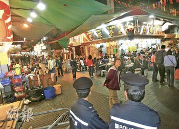 在廟街案發現場經營大牌檔的珠姐說,早前警方曾提醒,一旦遇事,應監視樓梯口,她9日晚聽到有人扔腐蝕彈后,便叫2名職員守住懷疑涉案大廈的鐵閘,惜未發現可疑人,現場商戶則如同平日演練般,熟手地報警、取水救人及監視有否疑人。