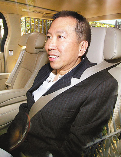 陳振聰18日穿上一套黑色西裝,下午2時30分在1名保鏢陪同下,乘坐其掛有兩地車牌的黑色豪華7人車,離開位于山頂歌賦山的豪宅,約10分鐘后便到達西區(qū)警署。警署門外早有逾20名記者守候,而警方也早有準備,派出6、7名軍裝警員在警署停車場門口維持秩序。