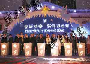 中新網12月6日電 澳門民署昨日(五日)傍晩在議事亭前地舉行圣誕及新年燈飾亮燈儀式,除特區政府在旅游區及多條主要街道布置燈飾,不少中區商戶、酒店亦在節日來臨前布置燈飾,令小城入夜后更奪目迷人,充滿節日氣氛。