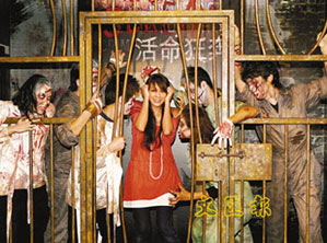 蠟像館8日特別邀請(qǐng)女星官恩娜出席試玩,貪玩的官恩娜在開(kāi)幕前已偷偷溜進(jìn)“瘋?cè)嗽骸币惶骄烤梗l(shuí)知道一貫看慣恐怖片且自認(rèn)膽量非凡的她,也幾乎被“嚇破膽”。成功“逃”出來(lái)的官恩娜說(shuō),展區(qū)最嚇人之處是真人和臘像混淆在一起,不知道何時(shí)會(huì)有“瘋?cè)恕笔@無(wú)神“彈”出來(lái)。