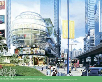 中新網9月10日電 據香港明報報道,香港市區重建局上周向城市規劃委員會呈交觀塘市中心重建計劃的總綱發展藍圖,擬建中的61層摩天商廈高度將保持280米,頂部18層更發展成為有400間房間的“天際”酒店,勢取代毗鄰的apm成為東九地標。