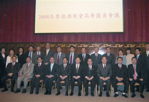 “2008年粵港澳商會高層圓桌會議”由香港中華總商會副會長林銘森主持。在會議上發言的還有:香港中華總商會會長霍震寰、廣東省總商會會長陳丹、香港工業總會主席陳鎮仁等。