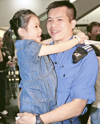 參與歡迎儀式的尚有搜救隊的家屬和同事,隊員在接受嘉勉期間,一直強忍悲喜交集的心情,待儀式完成后,數十人便沖前,輕吻妻兒和與曾出生入死的同事相擁抱,更有人不禁流下男兒淚,訴說救援行動中所遇驚險難忘的經歷,分享喜與悲。