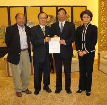 鄭坤生代為接收捐款并表示感謝。他說,這次地震發生后,香港各界人士捐款之踴躍突破以往,極大地顯示出香港同胞與內地同胞血濃于水的情懷,現在災區重建工作已經展開,各部門一定會嚴格按照要求積極重建,保證災區群眾早日重返家園。