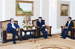 何厚鏵在廈門與福建省省委書記盧展工及省長黃小晶會晤。(圖片來源:澳門日報)
