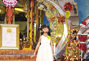 中新網11月17日電 據香港《文匯報》報道,在北京奧運開幕式上因《歌唱祖國》演出而揚名天下的9歲女孩林妙可,16日出席香港觀塘apm商場的宣傳活動,并即席演唱《Jingle Bells》及《我和你》兩首歌曲,用實際行動證明自己的唱功水平,并用其招牌式的甜美笑容俘虜了在場數百名圍觀的觀眾。
