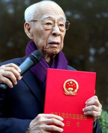 中新網2月20日電 據香港《大公報》報道,享譽國際的漢學大師饒宗頤成為首位獲聘為中央文史研究館館員的香港學者。這位博古通今的國學泰斗19日在香港文化界、學術界等賓朋見證下,由中聯辦副主任李剛手中接過代為轉送的證書。