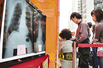 23日“世界防癆日”宣傳活動上,有攤位展示正常肺部及患結核病肺部的X光片。(圖片來源:文匯報)