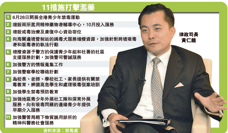 香港財(cái)政司長(zhǎng)曾俊華在上月公布的財(cái)政預(yù)算案中,預(yù)留5300萬(wàn)元的撥款,增加打擊毒品的資源。目前全港共有5間濫用精神科藥物輔導(dǎo)中心,服務(wù)全港五大區(qū)域。