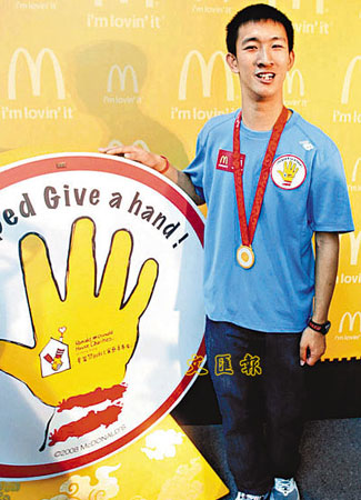 中新網9月27日電 據香港《文匯報》報道,剛在2008殘奧會勇奪200米金牌兼打破世界紀錄的香港“神奇小子”蘇樺偉26日化身慈善大使,出席“麥當勞叔叔之家慈善基金日”為患病兒童籌款。
