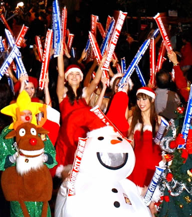 晚上踏入倒數(shù)時(shí)分,香港市民聚集在海港城對(duì)面的廣東道參加迎圣誕倒數(shù):“5、4、3、2、1……圣誕快樂!”在凌晨零時(shí)圣誕到臨一刻,在場(chǎng)市民齊聲喊出“圣誕快樂!”聲震云霄,大會(huì)發(fā)放燦爛的煙火和灑下密密麻麻的白紙碎,霎時(shí)間,香港尖沙咀好像下了冬雪,將派對(duì)氣氛推向高潮。