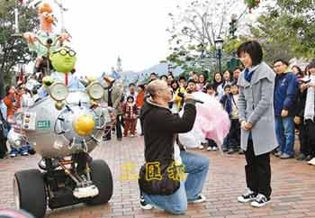 哪怕只是寥寥數(shù)句,沒有以甚么星星、月亮作比喻,袁先生的說話卻是肺腑之言。或許因?yàn)檫^于緊張的關(guān)系,他翻了幾遍,才能掏出放在口袋里的指環(huán),整個(gè)過程顯得相當(dāng)笨拙,但卻反為他添多一分可愛感。最終,女友不用細(xì)想,在數(shù)十名圍觀的樂園游客面前,將下半生的幸福交給男友。 (聶曉輝)