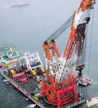 首先,“華天龍”號能穩(wěn)當(dāng)?shù)跗?000噸重物的巨臂,勾起綁好沉船的鋼索,當(dāng)沉船露出水面,打撈人員即在船上適當(dāng)位置焊上吊耳,以便“華天龍”將沉船扳正,然后移往淺水位置,最后利用潛水泵將沉船積水抽干,令船身保持浮力,方便搜索人員進(jìn)入船艙搜尋失蹤者。