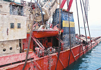 3月29日,香港政府與烏克蘭政府代表團(tuán)就調(diào)查沉船事故發(fā)表聯(lián)合聲明同意打撈。本月2日,烏克蘭船主和交通部廣州打撈局簽訂合約,起用全亞洲最大打撈船“華天龍”號和“南洋”號進(jìn)行打撈工作,先后將18名船員的遺體尋獲。