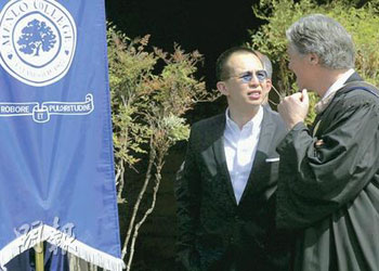 曾在Menlo高中就讀的李澤楷,11日應南灣Menlo College邀請,擔任畢業禮的主講嘉賓。典禮結束后,他回答了幾個提問。戴著太陽眼鏡的他說,只會在美國逗留數天處理業務,畢業禮后數小時便要飛往洛杉磯。至于有關其感情事,如是否已與梁洛施訂婚?李澤楷一概不回應,就連記者問他是否有意發展娛樂事業時,李澤楷也只是笑笑說:“我不會答你的。”
