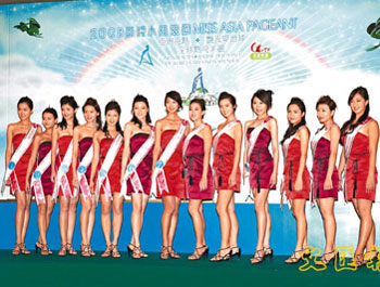 中新網10月14日電 據香港《文匯報》報道,13位“2008亞洲小姐競選(香港賽區)”的候選佳麗,13日在亞視總臺首次會見新聞界。13位候選佳麗分別穿上大會安排的紅色和紫色Tube Dress現身,并作自我介紹。