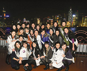 雖然天氣寒冷,但來自各國各地的佳麗均覺得機會難逢,不怕寒風吹襲,在甲板上觀賞這“東方之珠”璀璨的夜景,不少佳麗拿出相機拍照留念。