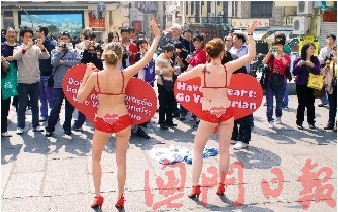 其中一人表示,穿內(nèi)衣宣傳主要是吸引公眾注意,她們是第一次在澳門進(jìn)行相關(guān)活動(dòng),但在世界其它地方就進(jìn)行超過(guò)100次。她有感澳門是個(gè)浪漫和熱情的城市,且公民接受能力強(qiáng),故特選情人節(jié)前在澳宣傳,相信能有效傳播善待動(dòng)物的信息。