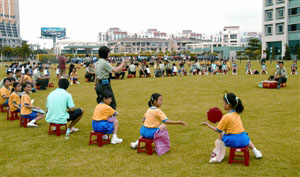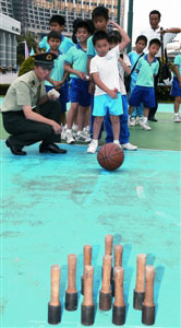 今年“六•一”兒童節參觀軍營活動一改過往只設參觀的單向活動方式,新增了一批駐軍官兵與小學生互動的游園和娛樂活動,包括有軍事常識問答、猜謎語、“擊鼓傳花”、水上漂、釣魚、保齡和拔河等游戲,學生與駐軍官兵打成一片,學生歡愉的笑聲傳遍整個軍營。不少學生紛紛站在升旗臺、輪式裝甲車上,與官兵拍照留念。