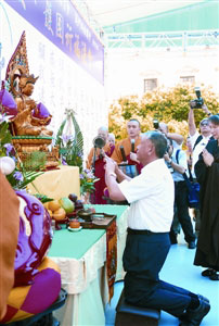 中新網7月22日電 據澳門日報報道,澳門忠信體育會為慶祝成立35周年,21日舉行“敬禱大慈大悲觀音菩薩寶誕、慈航普渡、護國祈福法會”,行政長官何厚鏵、外交部駐澳特派員公署特派員盧樹民、中聯辦文教部長劉曉航、社會文化司司長崔世安等應邀出席。